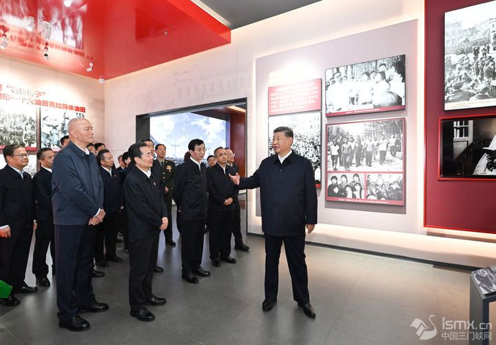 9月24日上午,中共中央總書記、國家主席、中央軍委主席習近平在烏魯木齊文化中心展覽館參觀新疆維吾爾自治區(qū)成立70周年主題成就展。新華社記者 燕雁 攝 新疆維吾爾自治區(qū)成立時的歷史視頻,十月拖拉機廠生產(chǎn)的第一批拖拉機,天山百貨大樓內(nèi)的復原場景,打贏脫貧攻堅戰(zhàn)的新舊對比照片,鑄牢中華民族共同體意識宣傳教育的展板,自治區(qū)擴大對外開放的口岸分布圖……習近平認真聽取講解,不時駐足察看,詳細詢問有關情況。他指出,新疆70年主題成就展充滿正能量,令人振奮。要精心組織觀展,通過新舊對比,用鮮活的事實進一步凝聚人心、凝聚力量,激勵新疆各族干部群眾鑄牢中華民族共同體意識,在共同富裕的道路上不斷創(chuàng)造幸福美好生活。