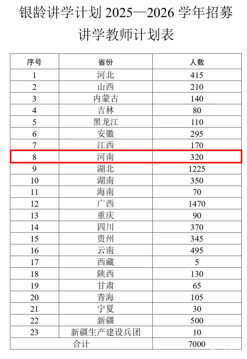 河南今年將招募 320名退休教師! 近日,教育部、財政部發(fā)布關于做好2025年銀齡講學計劃有關實施工作的通知,計劃在2025年義務教育階段招募7000名講學教師,旨在充分利用退休教師專業(yè)優(yōu)勢、經驗優(yōu)勢,加強新時代鄉(xiāng)村教師隊伍建設,推動鞏固脫貧攻堅成果同鄉(xiāng)村振興有效銜接。其中,河南將招募320名。 通知明確,計劃實施范圍以縣為基本單位,主要面向脫貧地區(qū),欠發(fā)達的民族縣、革命老區(qū)縣、邊境縣以及新疆生產建設兵團團場等,重點向國家鄉(xiāng)村振興重點幫扶縣、“三區(qū)三州”等地區(qū)傾斜,受援學校為縣鎮(zhèn)和農村學校。招募工作由省級教育行政部門負責,在計劃招募的7000名講學教師基礎上,鼓勵各省份和兵團結合實際,面向其他比較薄弱縣鄉(xiāng)地區(qū)和教育發(fā)展欠發(fā)達區(qū)域自主選拔優(yōu)秀退休教師開展講學,可酌情將普通高中納入實施范圍。 ![]() 講學教師服務時間原則上不少于1學年,鼓勵考核合格的連續(xù)講學。 ( 編輯:tln ) |